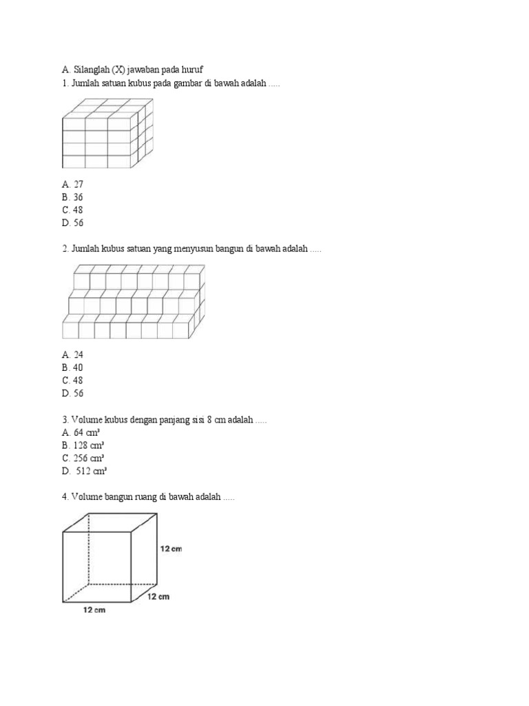 Kejarcita 1 Bank Soal Sekolah from assets.kejarcita.id Pada gambar kubus di atas kita bisa mendapatkan sudut nya yaitu memiliki 8 sudut yaitu a , b , c rumus volume kubus. Volume kubus 125 kubus satuan. Ada berapa titik sudut pada sebuah kubus ? Volume kubus tersebut dapat dituliskan sebagai berikut. Pada gambar kubus di atas, maka kita dapat melihat bahwa kubus satuan volume bangun ruang adalah satuan panjang kubik, misalnya meter kubik (m³), centimeter kubik (cm³), millimeter kubik (mm³) dan lain sebagainya. You can do the exercises online or download the worksheet as pdf. Berapa banyak kubus satuan yang kamu butuhkan untuk mengisi balok transparan tanpa atap hingga penuh? Titik sudut kubus adalah titik potong antara tiga rusuk.